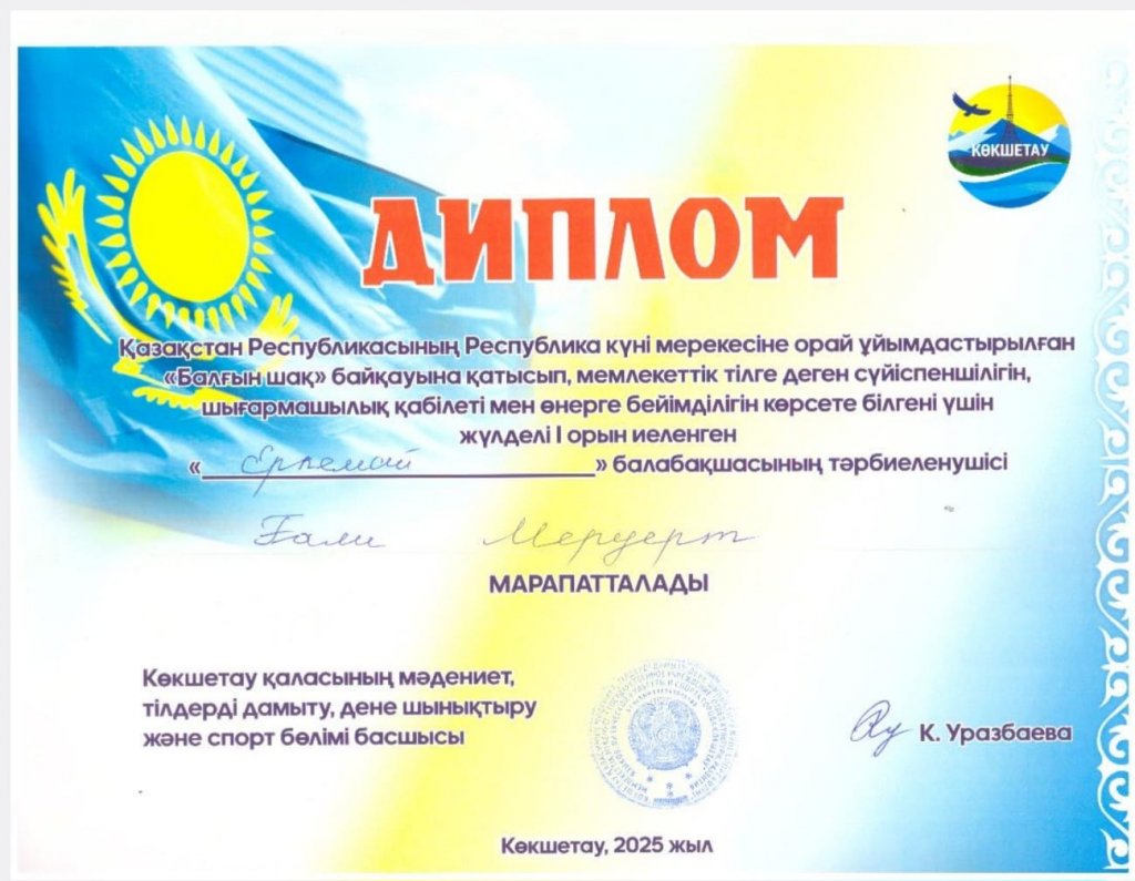 «АҚМОЛА ОБЛЫСЫ БІЛІМ БАСҚАРМАСЫНЫҢ КӨКШЕТАУ ҚАЛАСЫ БОЙЫНША БІЛІМ БӨЛІМІНІҢ ЖАНЫНДАҒЫ КӨКШЕТАУ ҚАЛАСЫНЫҢ «ЕРКЕМАЙ» БАЛАБАҚШАСЫ МЕМЛЕКЕТТІК КОММУНАЛДЫҚ ҚАЗЫНАЛЫҚ КӘСІПОРНЫ